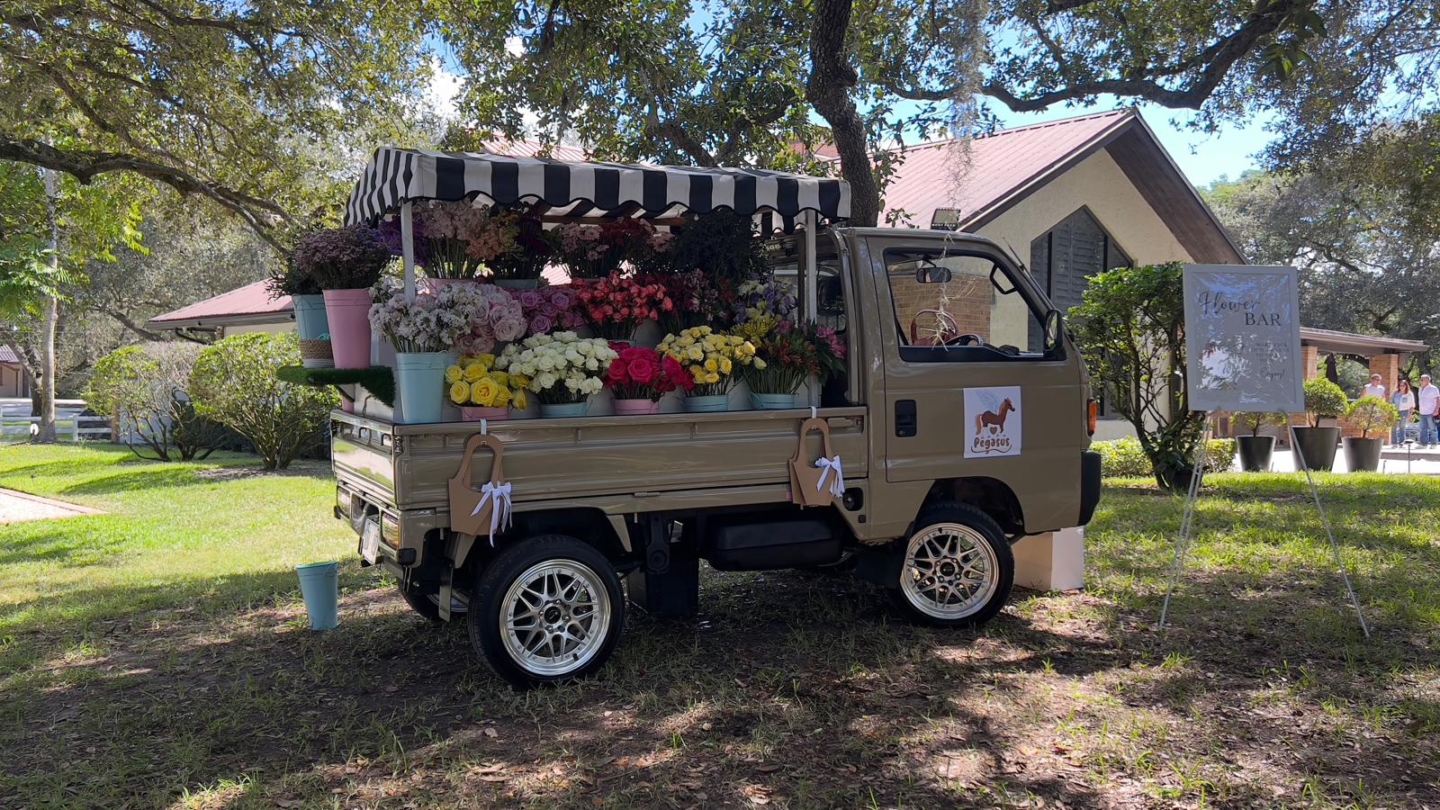 Flora Flower Bar is a Miami-based mobile floral studio specializing in curated flower experiences for events, brands, and celebrations. We transform any space into a beautiful, interactive floral moment through our signature Honda Acty Mini Flower Truck, White Flower Cart, 3-layer display stands, and custom flower walls.